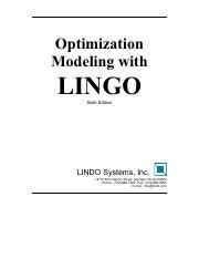 LZA - Free PDF Optimization Modeling With Lingo Solution Manual PDF BookBoon